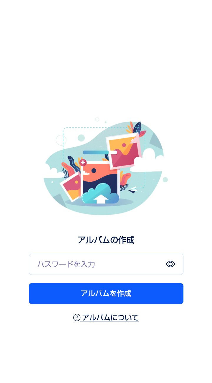 画面内の「パスワードを入力」のフォームにご自身が決めたパスワードを入力し、「アルバムを作成」ボタンを押してください。